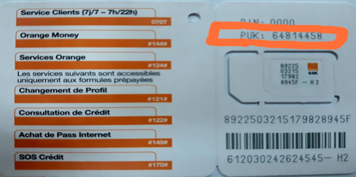 Vous pouvez également retrouver le code PUK sur le support de votre carte SIM.