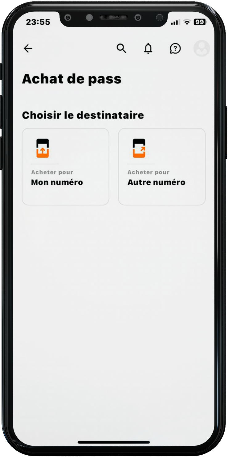 Achetez votre Pass mobile (SMS, minute de communication , internet ) en quelques clics
