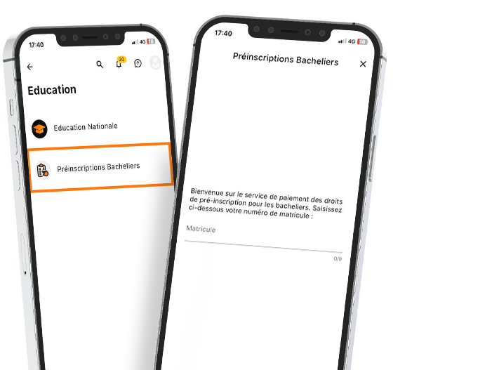 Pré-inscription des bâcheliers avec ta super app Max it ! Enregistre le matricule de l'élève et paye les droits via Orange Money